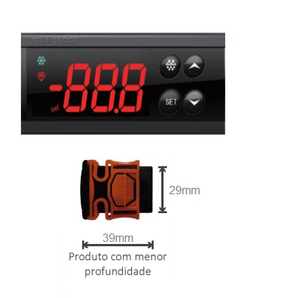 Su profundidad reducida de 39mm lo convierte en un producto versátil, aplicable en equipos donde el aislamiento térmico reduce el espacio para instalación del