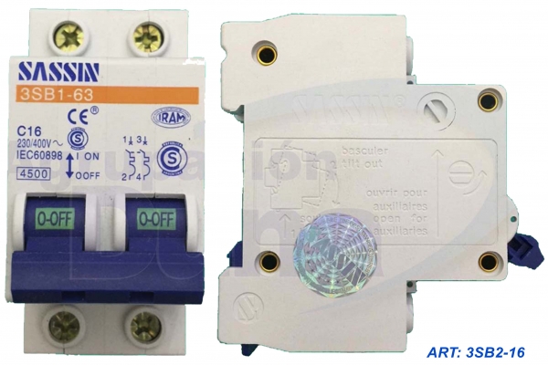 Interruptor Automático Termomagnetico Bipolar 16a Sassin