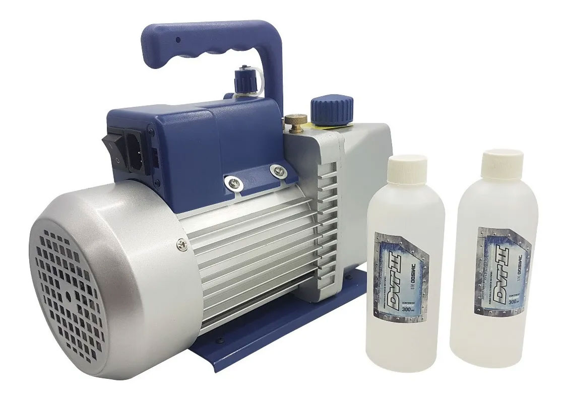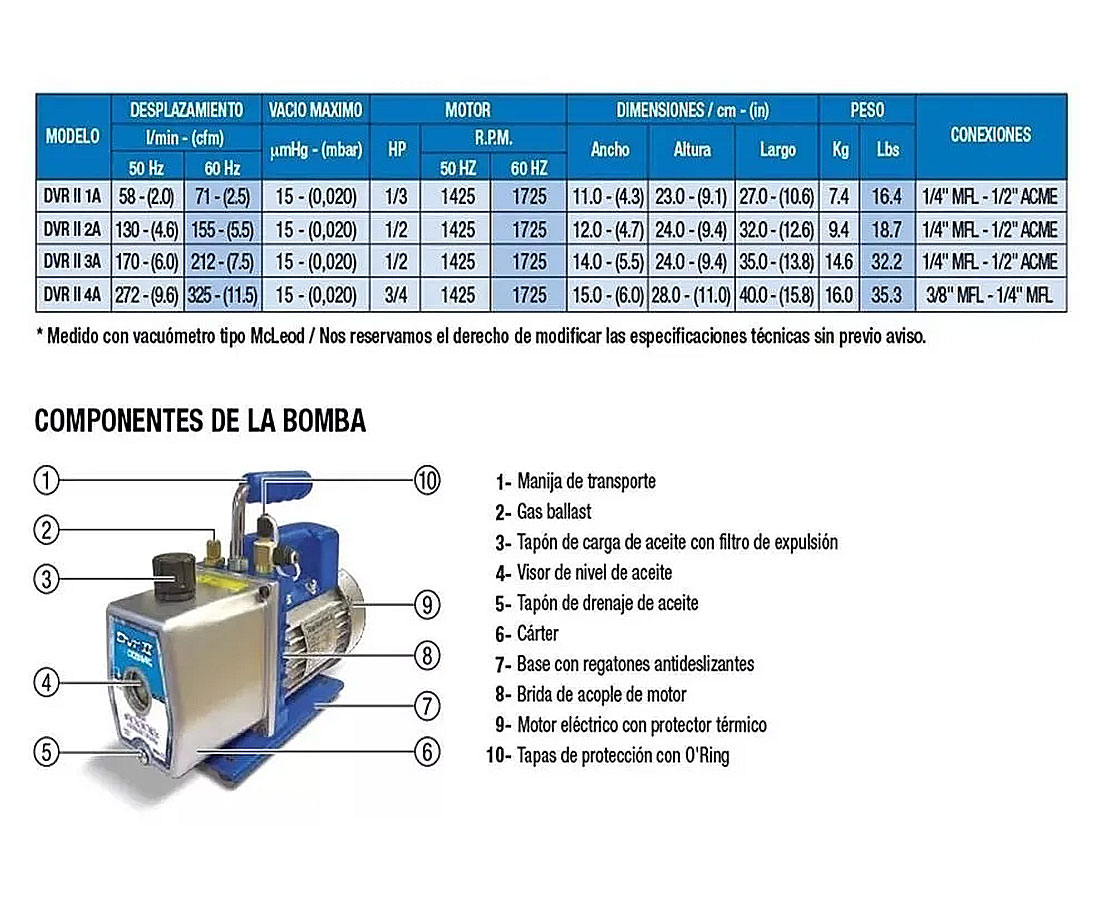 Bomba compacta para vacío, rotativa a paletas en baño de aceite de dos etapas, diseñada y desarrollada específicamente para servicios de aire acondicionado y refrigeración.
