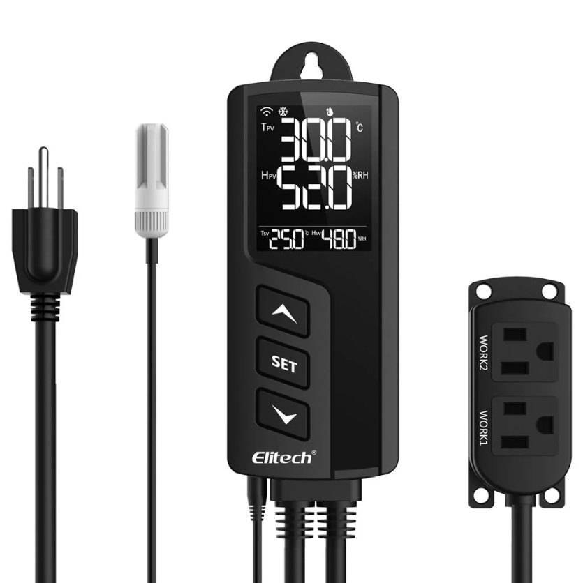 Elitech STC-1000WiFi TH es un controlador de temperatura y humedad inalámbrico integrado plug-and-play. Tiene una sonda de temperatura y humedad integrada y cuenta con dos tomas de salida precableadas que pueden lograr "solo enchufar y usar" para controlar la temperatura y la humedad simultáneamente. En comparación con STC-1000Pro TH, Elitech STC-1000WiFi TH tiene incorporado el módulo WiFi que admite visualización remota, configuración y otras operaciones a través de la aplicación Elitech.