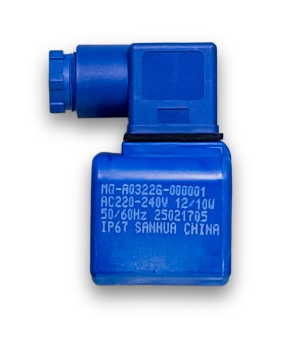 La bobina Sanhua, modelo MQ-A03 22G-000001, es un componente electromagnético diseñado para ser utilizado en válvulas solenoides de las series MDF, MDF-R y otras aplicaciones que requieran un accionamiento fiable y de bajo consumo. Esta bobina cuenta con conector tipo DIN 43650 (enchufe industrial) , lo que facilita una instalación rápida y segura, con grado de protección IP67, garantizando su funcionamiento incluso en entornos exigentes con presencia de humedad o polvo. Su diseño de doble sellado y su alta calidad constructiva la hacen ideal para sistemas de refrigeración, aire acondicionado y bombas de calor que operan con refrigerantes estándar e inflamables (A2L, A3).