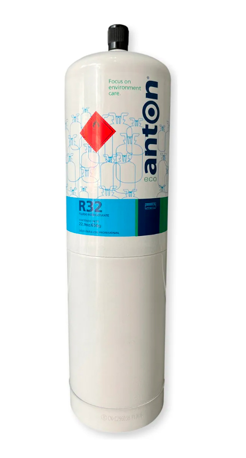 La lata de gas R32 de Anton es una presentación de este refrigerante de nueva generación para aire acondicionado y refrigeración residencial, con énfasis en la eficiencia energética y bajo impacto ambiental (cero agotamiento de ozono y bajo potencial de calentamiento).