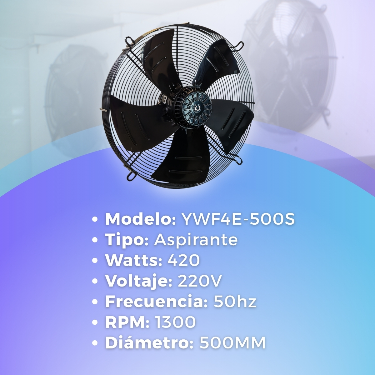 Forzador Axial Aspirante 500mm 220V Succion calidad Weiguang