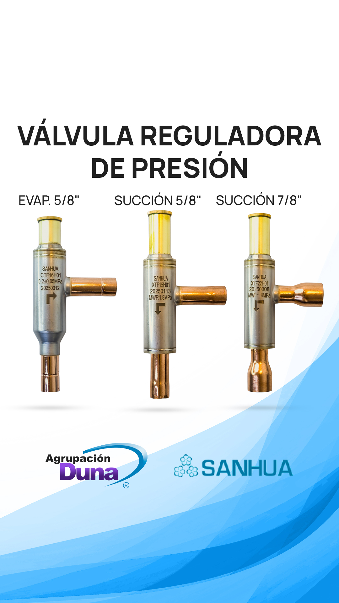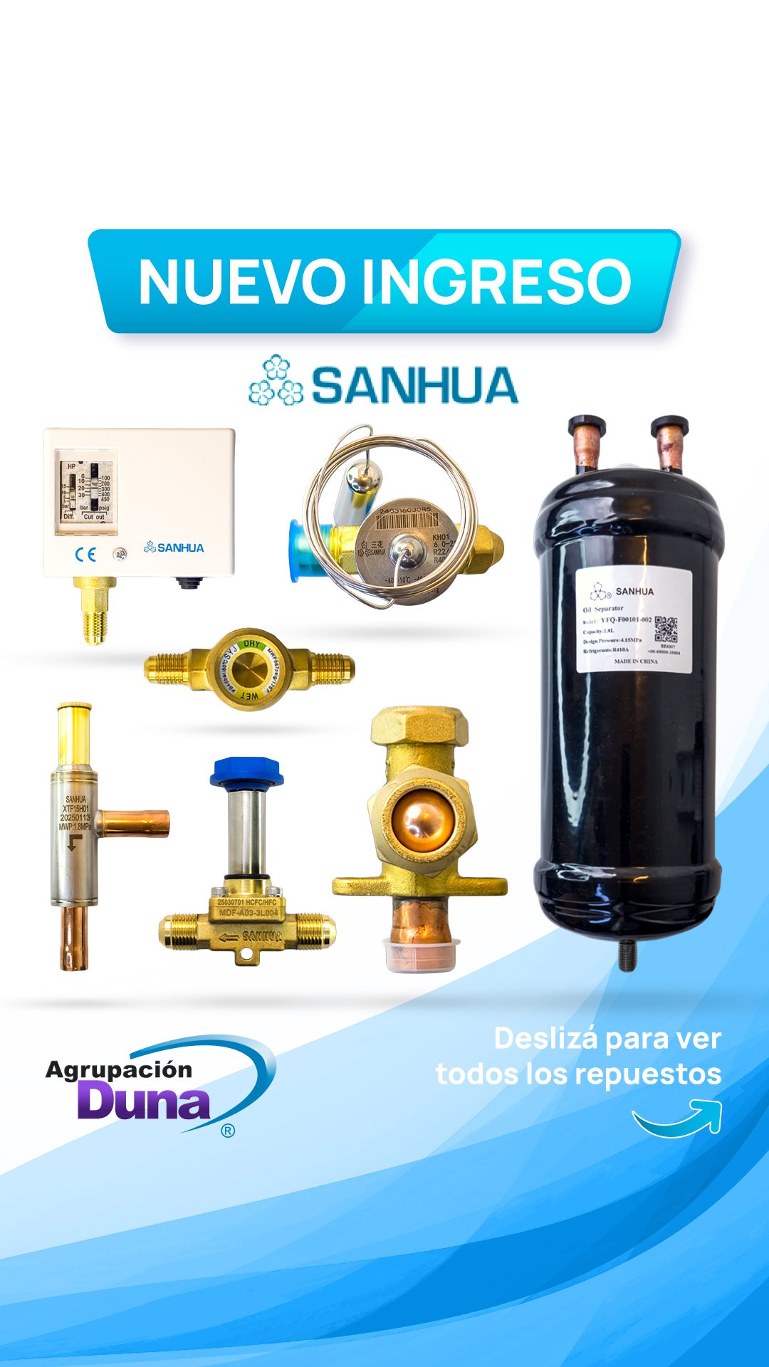 • ¿Por qué elegir SANHUA con Agrupación Duna? Obtienes la ingeniería de precisión de una marca global, la disponibilidad de stock que necesitas y la tranquilidad de nuestro soporte técnico y garantía. Es la combinación perfecta de calidad de producto y servicio local.