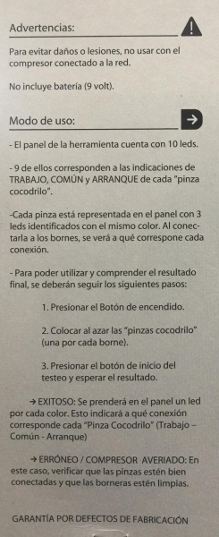 - 9 de ellos corresponden a la indicaciones de TRABAJO, COMUN y ARRANQUE de cada pinza cocodrilo.