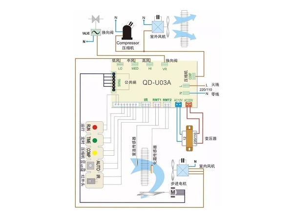 Plaqueta universal para aire acondicionado. Modelo QD-U03C+3