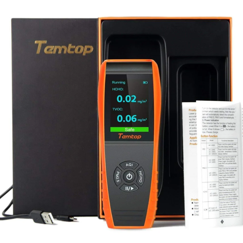 DETECTOR LASER DE PARTICULAS MULTIFUNCIONAL, Monitor de calidad del aire Temtop PM2.5 PM10 HCHO AQI Partículas COV Humedad