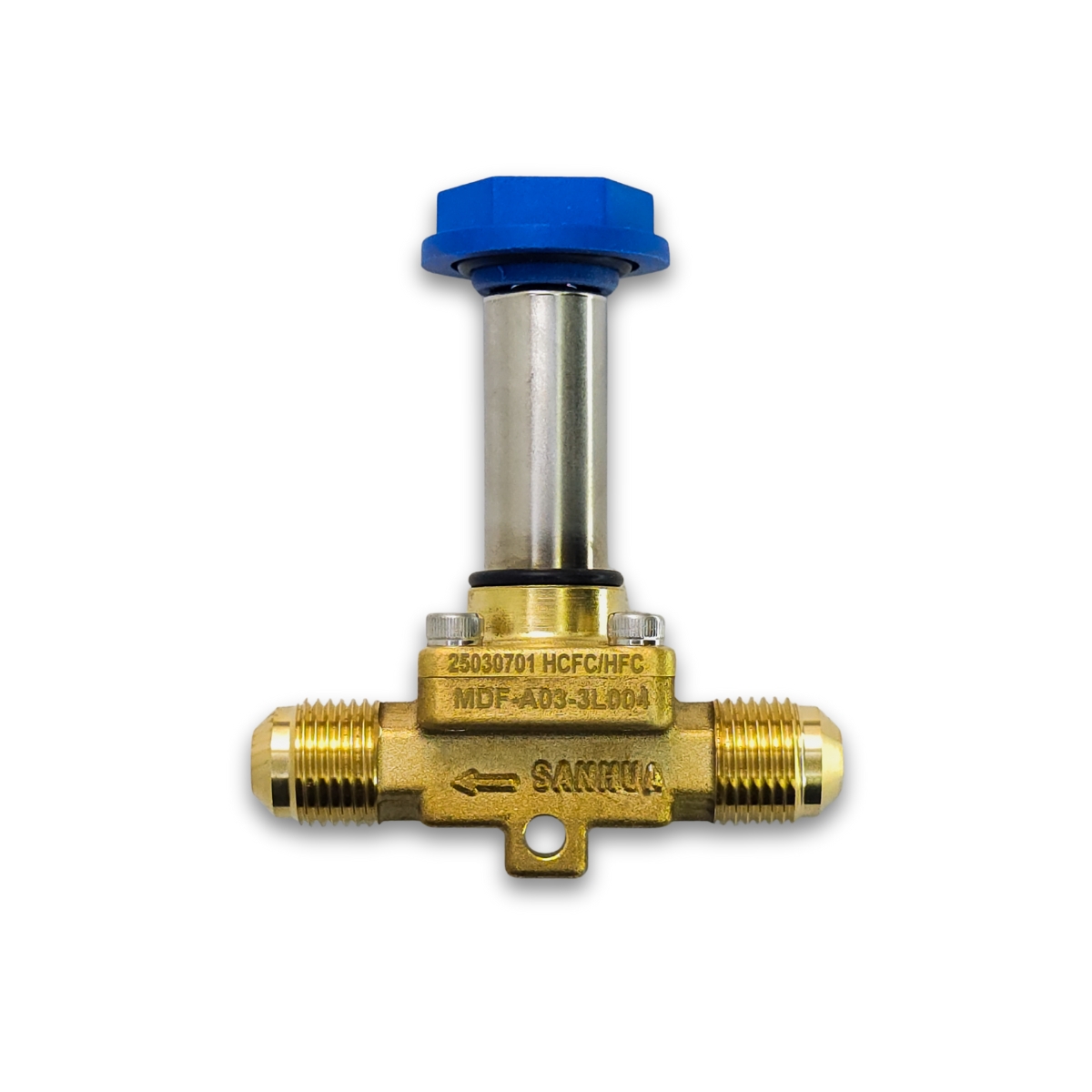 Optimiza el desempeño de tu sistema con esta válvula solenoide confiable y eficiente. La MDF‑A03‑3L 004 cuenta con conexión flare de 3/8″ y diseño compacto, perfecta para líneas de líquido en equipos de aire acondicionado, refrigeración comercial o industrial.