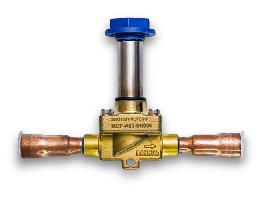 La MDF‑A03‑6H 004 es una válvula solenoide pilot‑membrana, diseñada con conexión para soldar ODF de ½″. Con un caudal robusto (Kv = 0,8 m³/h) y presión operativa segura de hasta 45 bar, garantiza un control efectivo y hermético del refrigerante.