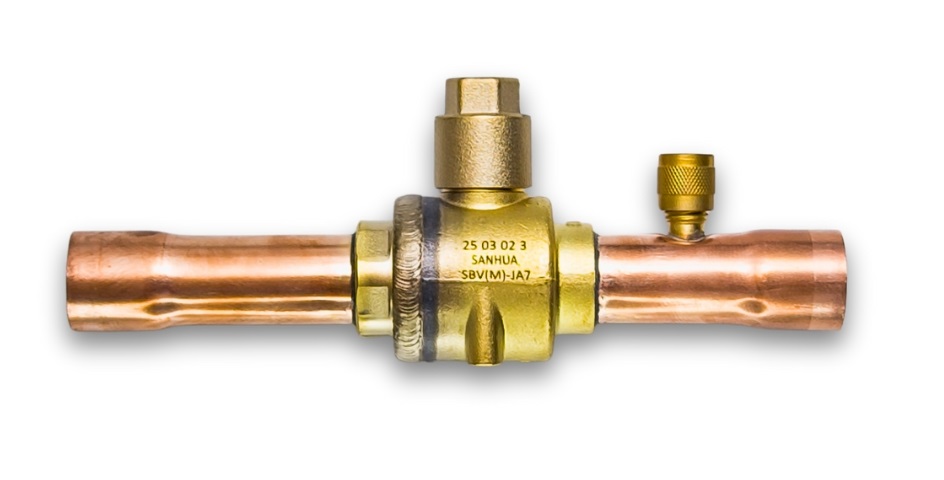 La Sanhua SBV(M)-JA7YHSY-1-SA es una válvula de bola de servicio de 7/8″, pensada para sistemas de refrigeración y aire acondicionado de media y alta capacidad.