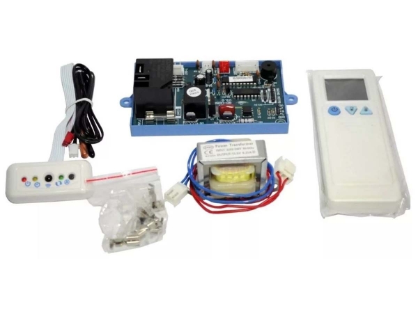 - Contenido: Transformador, ficha leds receptor e indicador de funciones, Control remoto, Sensor de ambiente y de serpentina.