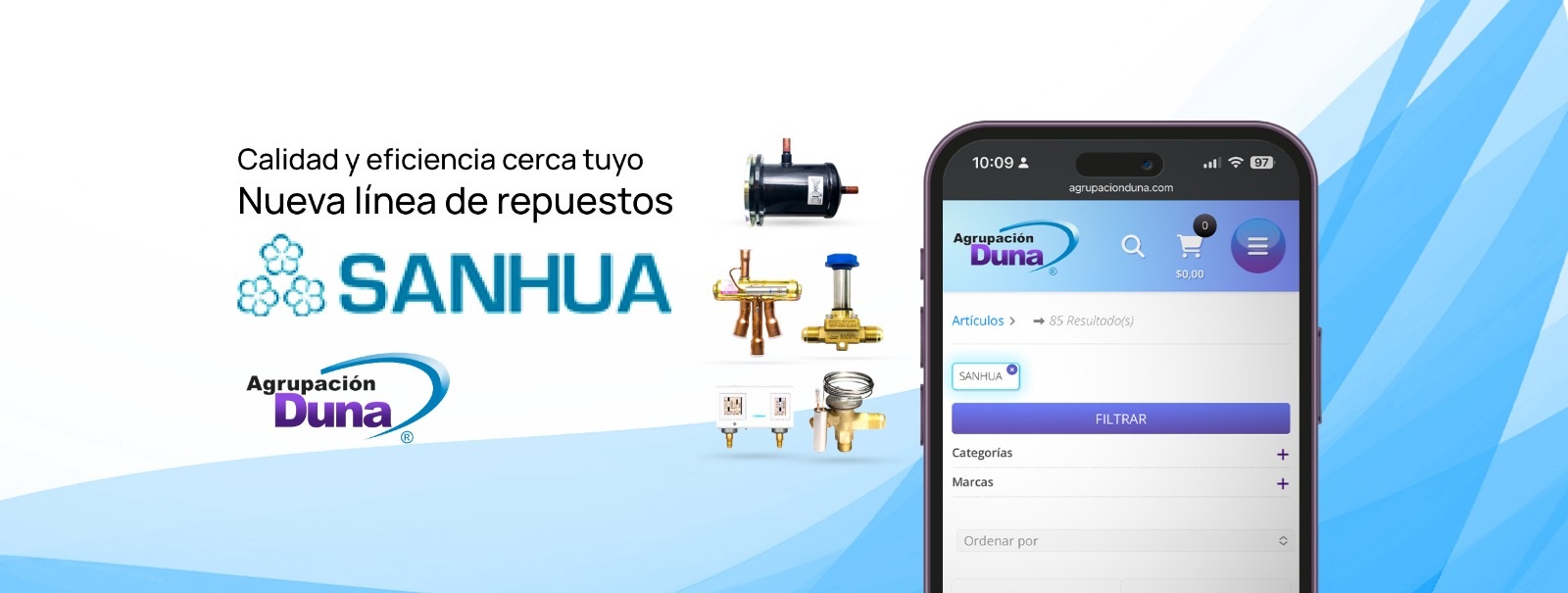 Ahora podrás acceder con la confianza y el respaldo de Agrupación Duna a la línea más completa de componentes SANHUA, diseñados para el alto rendimiento: