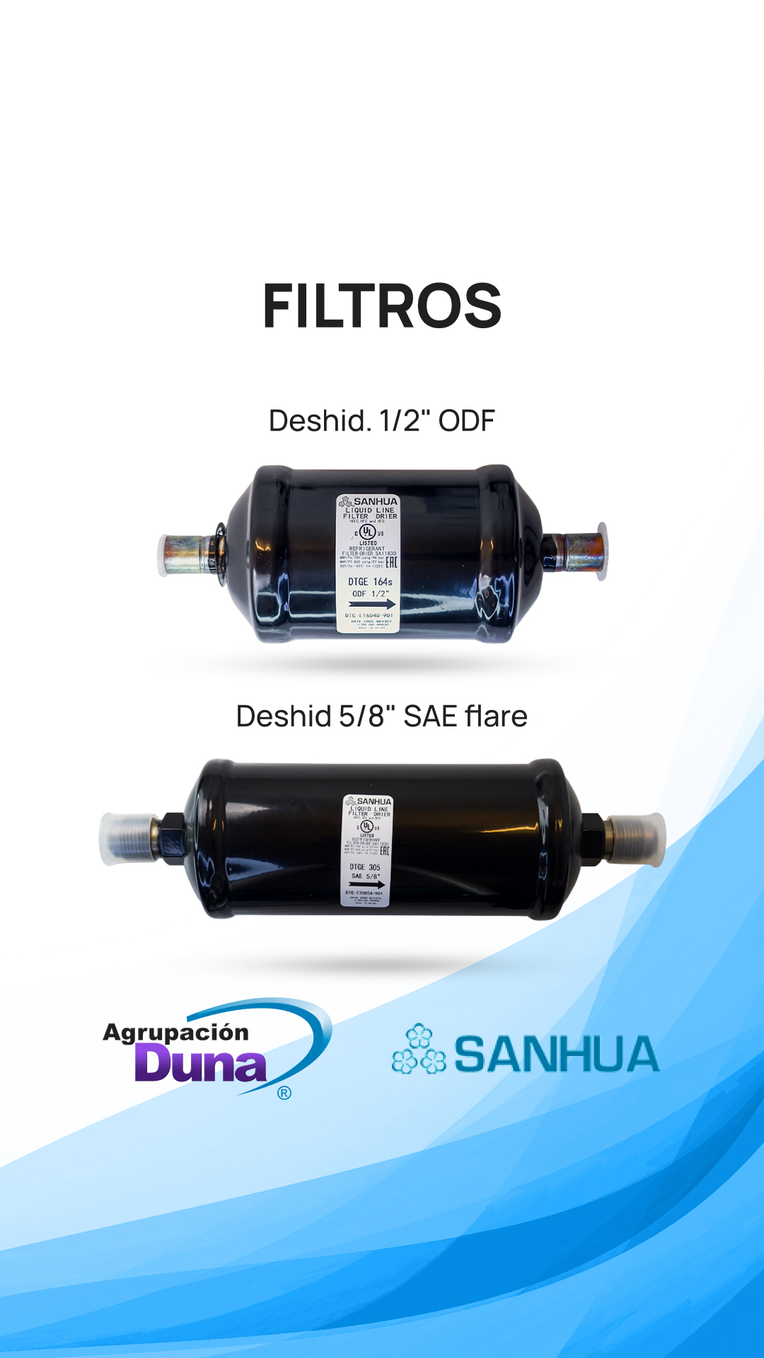 Filtros deshidratadores de alta capacidad.